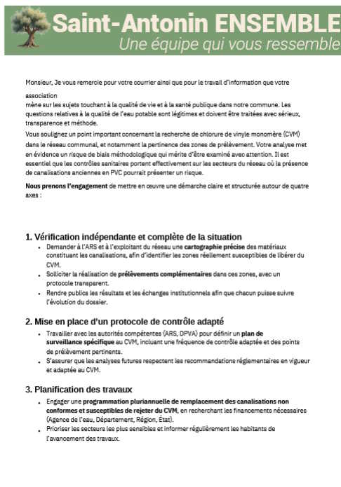 municipales de 2026 réponse de la liste « Saint Antonin ensemble » Voici la réponse de Damien GAUTHIER tête de la liste : A suivre